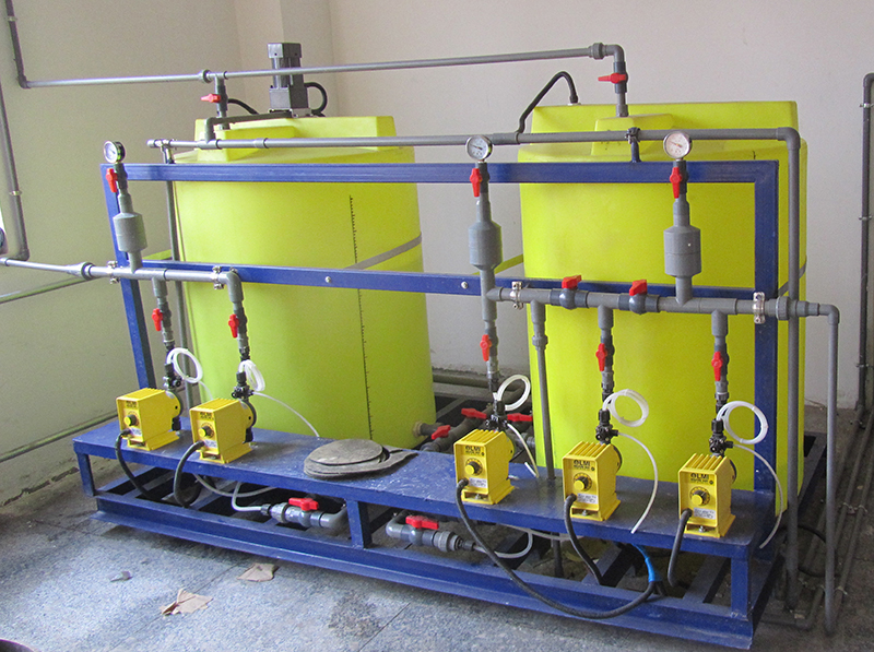 加藥裝置中溶液箱的容積可由超小100L到5000L等,可根據(jù)加藥量選定,根據(jù)輸送介質(zhì)的不同,有多種材料可供選擇,如碳鋼(碳鋼襯膠)、不銹鋼、非金屬材質(zhì)(PE、PVC、PP、PTFE)等。